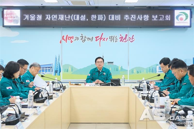 천안시가 올겨울 대설과 한파에 대비해 시민 안전망을 강화한다. 시는 11월 15일부터 내년 3월 15일까지를 ‘겨울철 자연재해 대책 기간’으로 설정하고, 재난안전대책본부를 중심으로 종합 대응체계를 본격 가동한다.14일 열린 ‘2025년 겨울철 자연재난 대비 추진상황 보고회’에서 천안시는 재해 취약지역 정비, 도로 제설, 취약계층 보호 등 세부 대책을 발표했