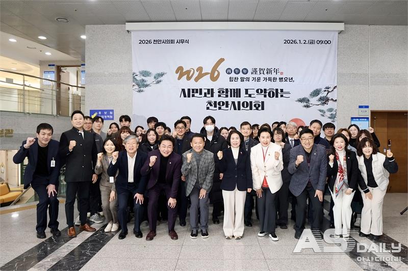 천안시의회가 2026년 병오년 새해를 맞아 시무식을 열고 본격적인 의정활동에 돌입했다. 김행금 의장을 비롯한 시의원과 사무국 직원들은 새해 첫 일정에서 ‘실천하는 의회’의 다짐을 공유하며 시민과 함께하는 책임 있는 의정활동을 강조했다.1월 2일 오전 9시, 천안시의회는 의회 1층 로비에서 시무식을 개최했다. 이날 행사에는