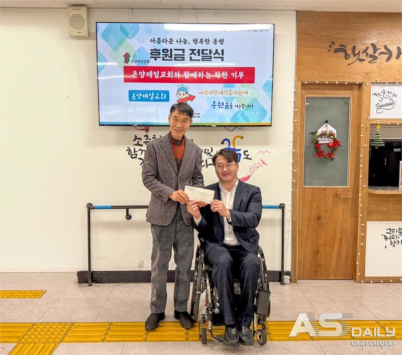 온양제일교회가 지역 장애인을 위한 따뜻한 나눔을 실천했다. 한국지체장애인협회 아산시장애인복지관은 지난 29일 온양제일교회로부터 후원금 100만 원을 전달받아 복지 프로그램 운영과 장애인 지원에 활용할 계획이라고 밝혔다.후원금 전달식은 아산시장애인복지관에서 진행됐으며, 온양제일교회 이경식 장로가 직접 참석해 정성을 담은 후
