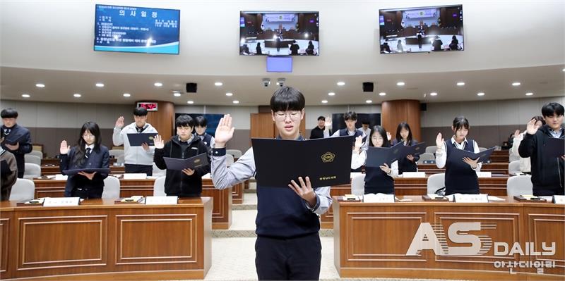 충남도의회가 미래 유권자인 청소년들에게 지방의회의 역할과 민주적 의사결정 과정을 직접 체험할 수 있는 기회를 제공했다.도의회는 10월 29일 당진 송악고등학교 학생 17명과 지도교사 2명을 초청해 ‘청소년 의회교실’을 운영했다. 이번 프로그램은 학생들이 모의 의정활동을 통해 지방자치의 원리를 배우고, 주민대표로서의 역할을