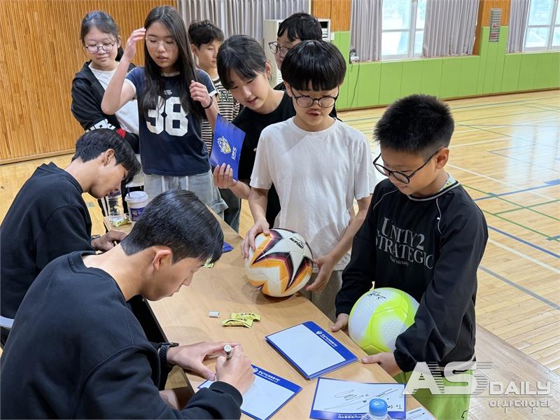 충남아산FC, 온양중앙초서 비타민 스쿨 운영… 김주성·이연우 선수 참여
