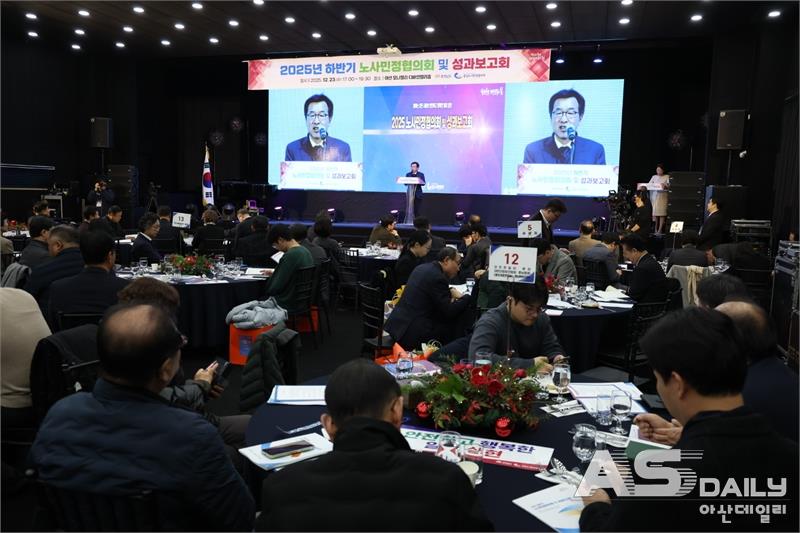 충남도가 노사민정 협력의 성과를 공유하고, 고용 위기 극복과 지속 가능한 성장을 위한 공동 실천 의지를 다졌다. 장기 노사 갈등 해소와 노동환경 개선 등 올해 거둔 성과를 바탕으로, 내년에도 상생 협력의 기조를 이어가겠다는 계획이다.충남도는 지난 23일 아산 모나밸리 웨딩홀에서 ‘2025년 하반기 노사민정협의회 및 성과보