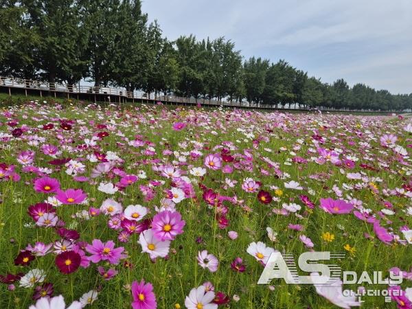 가을 정취가 물씬 풍기는 아산시 곡교천변이 백일홍과 코스모스, 댑싸리 등으로 화려하게 단장됐다. 아산시는 계절의 아름다움을 시민과 관광객이 함께 누릴 수 있도록 ‘가을 초화원’을 조성해 도심 속 힐링 공간으로 탈바꿈시켰다.