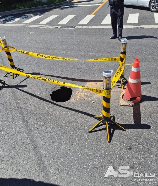 ▲지난 7월 아산시 배방읍 도로에서 싱크홀이 발생했다