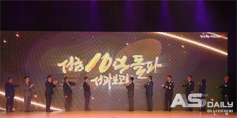 ▲충남소방본부는 10월 14일 충남도청 문예회관에서 ‘가치가유 충남119 성금 10억 돌파 성과 보고회’