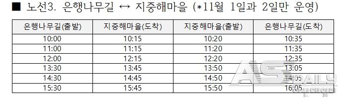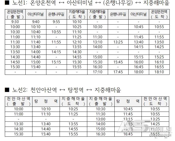 행사 기간 동안 지중해마을 행사장을 오가는 무료 셔틀버스도 운행된다. 온양온천역, 아산터미널, 천안아산역, 탕정역, 은행나무길 등 주요 거점을 순환하며, 관람객의 이동 편의를 돕는다. 시 관계자는 “주차 공간이 제한적인 만큼, 시민 여러분께서는 셔틀버스를 적극 활용해주시길 바란다”고 당부했다