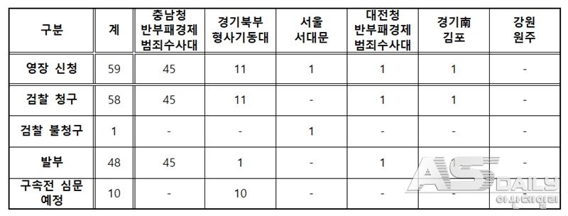 전체 송환자 중 1명은 이미 별건으로 구속된 상태이며, 경찰이 영장을 신청하지 않은 4명과 검찰이 청구를 반려한 1명을 제외한 58명에 대해 구속영장이 청구됐다. 이 가운데 48명은 10월 20일 충남 홍성 대전지법 홍성지원 등에서 구속 전 피의자 심문을 받았고, 전원에 대해 영장이 발부된 것으로 확인됐다.