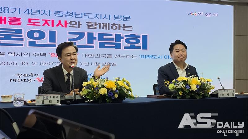 ▲21일, 김태흠 충남도지사는 아산시청에서 열린 기자간담회