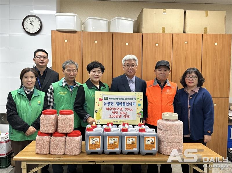 음봉면 새마을협의회(회장 김근식·박옥순)는 지난 6일, 음봉면 행복키움추진단(공동단장 이정성·이의천)에 새우젓(오젓) 30㎏과 액젓 40㎏ 등 총 100만 원 상당의 김장 재료를 전달했다. 이번 후원은 저소득층과 독거 어르신 등 지역 내 취약계층이 따뜻한 겨울을 보낼 수 있도록 돕기 위한 취지로 마련됐다.