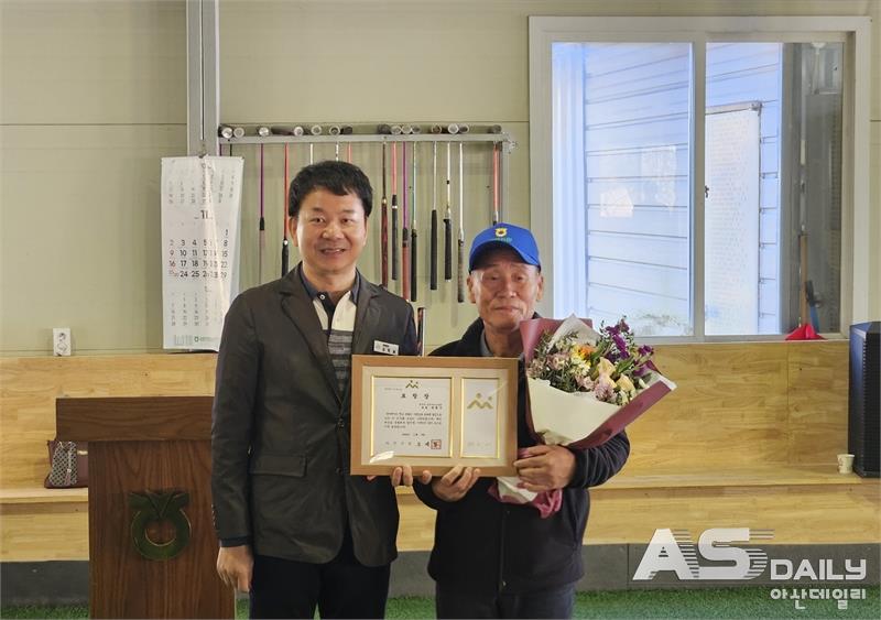 ▲게이트볼회원에게 아산시장 표창을 수여하고 있다.