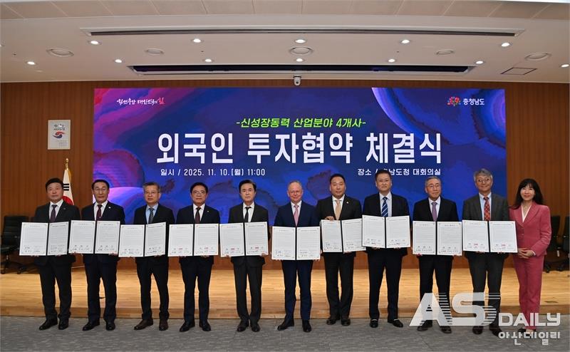 10일 충남도청 대회의실에서 열린 협약식에는 김태흠 충남지사를 비롯해 미국, UAE, 스위스, 일본계 기업 대표들이 참석했다. 이번 협약은 반도체, 항공모빌리티, 로봇 자동화, 친환경 건자재 등 미래 산업을 선도하는 분야에 집중됐다.