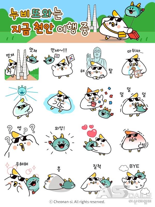 카카오톡 이모티콘은 11일 오후 2시부터 ‘천안시 관광’ 채널을 추가한 이용자에게 선착순 무료 배포된다. 총 16종으로 구성된 이모티콘은 누비·또와의 다양한 감정과 행동을 담아 시민들의 일상 속 소통에 활용될 전망이다.