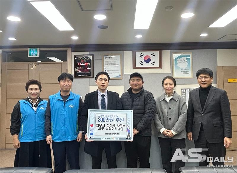 아산시 탕정면 행복키움추진단이 지역사회 나눔 활동을 위한 든든한 후원을 받았다. 법무사 정찬웅과 농업회사법인 씨앗(대표 안용범)이 후원금 300만 원을 전달하며, 취약계층을 위한 ‘사랑의 김장김치 나눔 행사’에 힘을 보탰다.