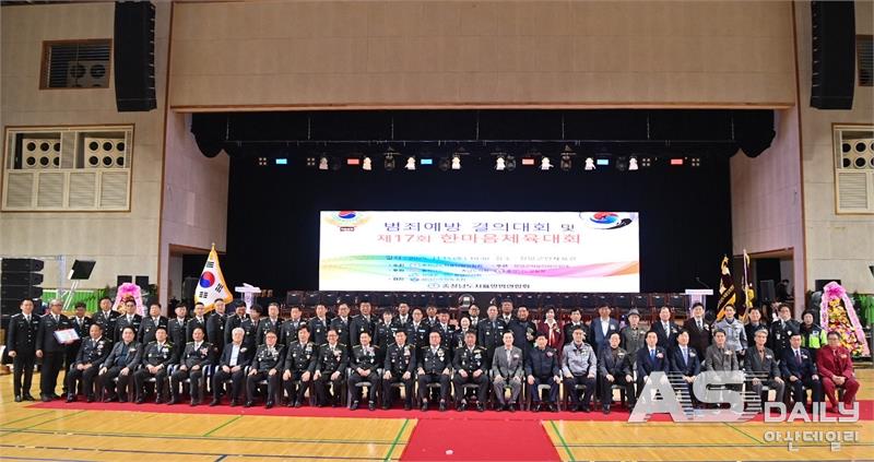충남 청양군민체육관에서 열린 ‘제17회 범죄예방 결의대회 및 한마음 체육대회’가 지역 안전을 지키는 자율방범대원들의 헌신을 재확인하는 자리로 마련됐다. 김태흠 충남지사는 현장을 찾아 대원들의 노고를 격려하며 “도민 안전을 위한 헌신에 깊이 감사한다”고 밝혔다.