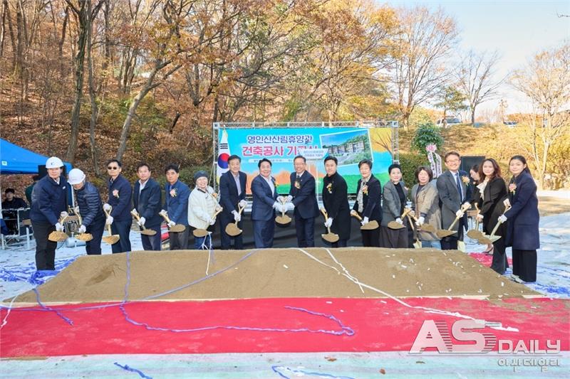 영인산산림휴양관 건립은 2022년 기존 시설이 안전진단에서 D등급을 받아 철거된 이후 추진됐다. 아산시는 2023년 충남도의 지방재정투자심사와 설계 공모를 거쳐 사업을 확정했으며, 올해 착공에 들어가 2026년 준공, 2027년 시범운영을 거쳐 본격 운영에 들어갈 계획이다.