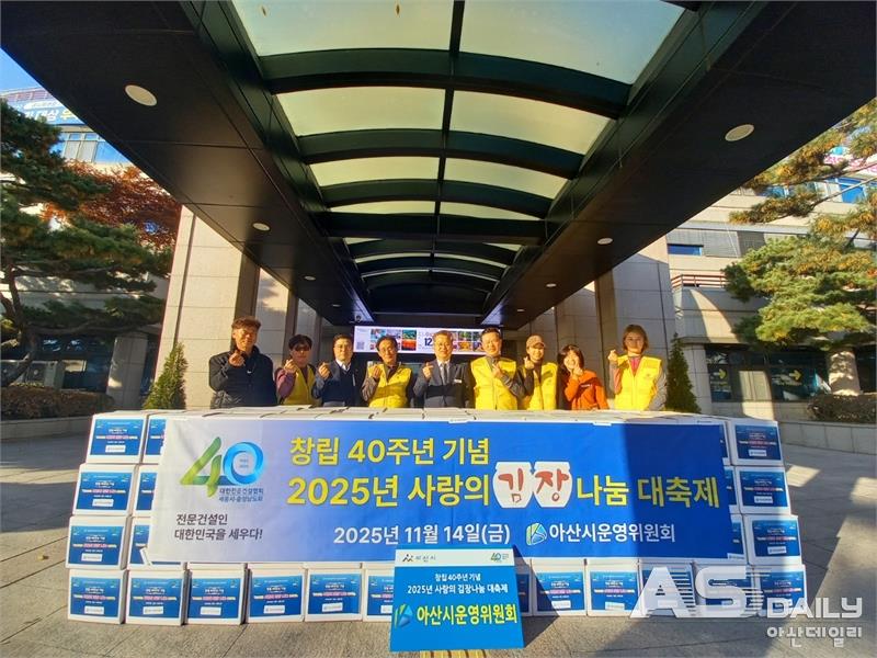 대한전문건설협회 세종시·충청남도회가 창립 40주년을 맞아 ‘사랑의 김장나눔 대축제’를 열고 아산시에 김장김치 200박스를 후원했다. 이번 나눔은 단순한 기부를 넘어 지역사회와 함께하는 사회공헌의 의미를 되새기는 자리로 평가된다.