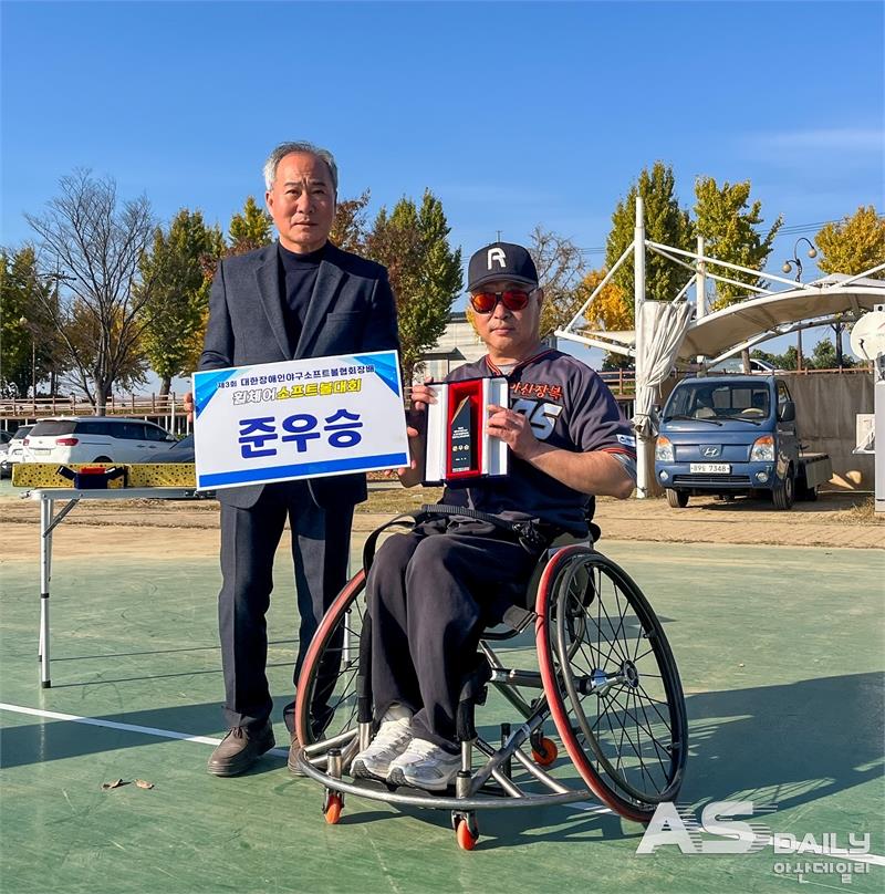 ▲아산시장애인복지관이 운영하는 아산 라이노스 야구단이 ‘제3회 대한장애인야구소프트볼협회장배 휠체어소프트볼대회’에서 준우승