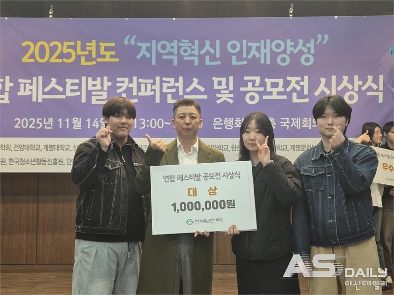지난 11월 14일 서울 명동 은행회관 국제회의실에서 열린 ‘2025 지역혁신 인재양성 연합 페스티벌 컨퍼런스’에는 전국 13개 대학 및 전문대학 학생들이 참가했다. 선문대는 창업 아이디어와 지역사회문제 해결 분야에서 총 8팀, 33명의 학생이 출전해 대상 1팀, 최우수상 1팀, 우수상 6팀을 수상하는 쾌거를 거뒀다.