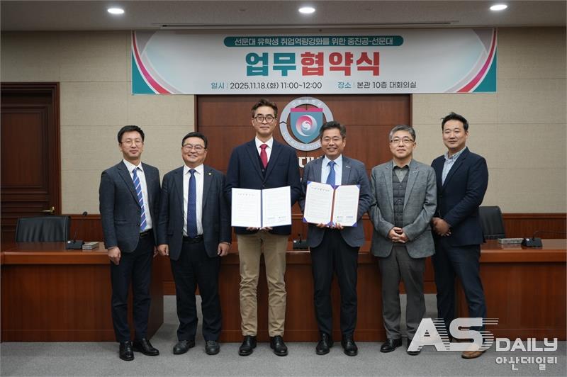 지난 18일 선문대 본관 대회의실에서 열린 협약식에서 선문대(총장 문성제)와 중진공 충청연수원(원장 이완희)은 외국인 유학생을 대상으로 한 맞춤형 취업역량 강화 프로그램을 공동 추진하기로 합의했다. 이번 협약은 충남 지역 중소기업의 인력 부족 문제를 해소하는 동시에, 선문대에 재학 중인 3,300여 명의 외국인 유학생이 현장에서 경쟁력을 갖춘 인재로 성장할 수 있도록 돕는 것을 목표로 한다.