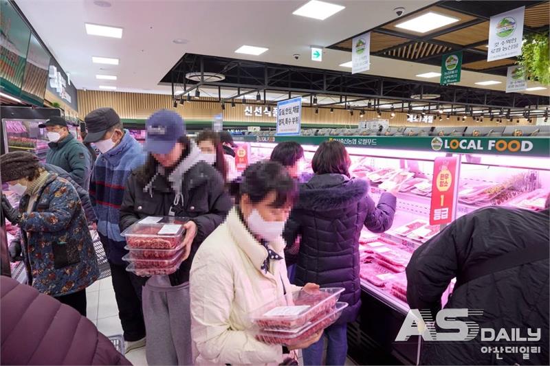 21일 아산축산농협 본점 하나로마트에서 열린 이번 행사는 아산시(시장 오세현)와 아산축협(조합장 천해수)이 공동 주최했다. 최근 경기 둔화로 위축된 소비를 회복하고, 지역에서 생산된 우수 축산물을 널리 알리기 위해 기획됐다.