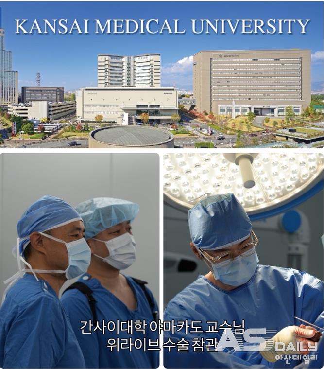 ▲세계적 권위의 스포츠의학 전문가가 아산을 찾았다. 일본 간사이 의과대학의 견관절·스포츠의학 분야 석학인 야마카도 코타로(Kotaro Yamakado) 교수가 위라이브병원(대표원장 유재성)을 방문해 어깨 인공관절 수술을 참관