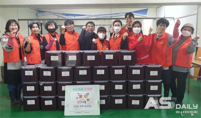 ▲온양2동 행복키움추진단이 김장김치 나눔 행사를 진행하고 있는 모습