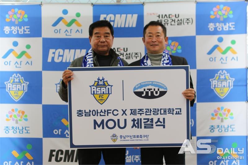 충남아산프로축구단(대표이사 이준일)은 지난 25일 신평고, 제주관광대, 평택SH와 업무 협약을 체결했다고 밝혔다. 이번 협약식에는 이준일 대표를 비롯해 신평고 구본명 교장, 제주관광대 김성규 총장, 평택SH 이상현 대표가 참석했다.