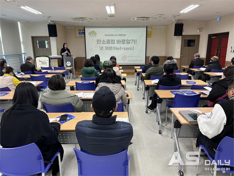 아산시가 평생교육 현장을 통해 탄소중립 실천 문화를 확산시키고 있다. 시는 4일 아산시평생학습관에서 평생교육강사를 대상으로 ‘탄소중립 바로 알기’ 교육을 진행하며 기후위기 대응 역량 강화에 나섰다.