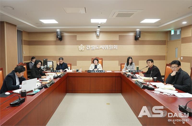제263회 아산시의회 제2차 정례회 기간 중 열린 건설도시위원회 회의에서는 김은복 위원장을 비롯해 신미진 부위원장, 윤원준·안정근·홍순철 의원이 참여해 각 부서의 업무보고를 검토했다.