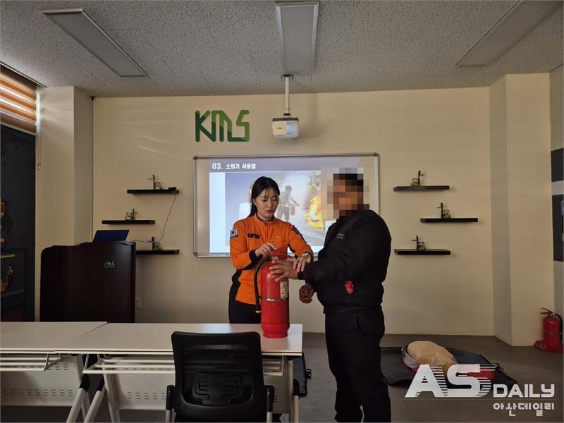 아산소방서(서장 박종인)는 지난 8일 한국물류시스템에서 근무하는 외국인 근로자 35명을 대상으로 소방안전교육을 실시했다. 이번 교육은 겨울철 화재 예방 대책의 일환으로 마련됐으며, 산업시설 내 안전 취약 계층으로 꼽히는 외국인 근로자의 대응 능력 향상에 초점을 맞췄다.