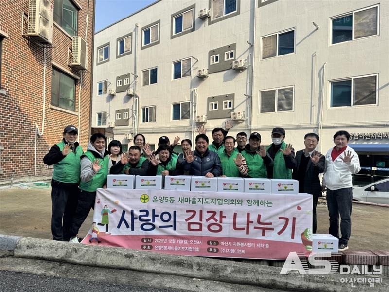 아산시 온양5동 새마을지도자협의회가 연말을 맞아 지역사회에 따뜻한 나눔을 실천했다. 협의회는 직접 담근 김장김치 500kg을 경로당과 저소득 취약계층에 전달하며 겨울나기에 어려움을 겪는 이웃들에게 힘을 보탰다.