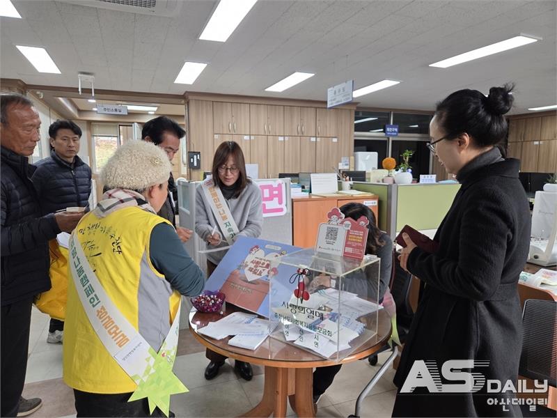 영인면 행정복지센터(면장 김은경)는 지난 11일 센터에서 ‘희망2026나눔캠페인’ 집중모금 행사를 진행했다. ‘행복을 더하는 기부, 기부로 바꾸는 아산!’이라는 슬로건 아래 열린 이번 행사에는 마을 이장단을 비롯해 지역 기관·단체, 노인회, 행복키움추진단 등 다양한 지역사회 구성원들이 직접 방문해 성금 모금에 동참했다.