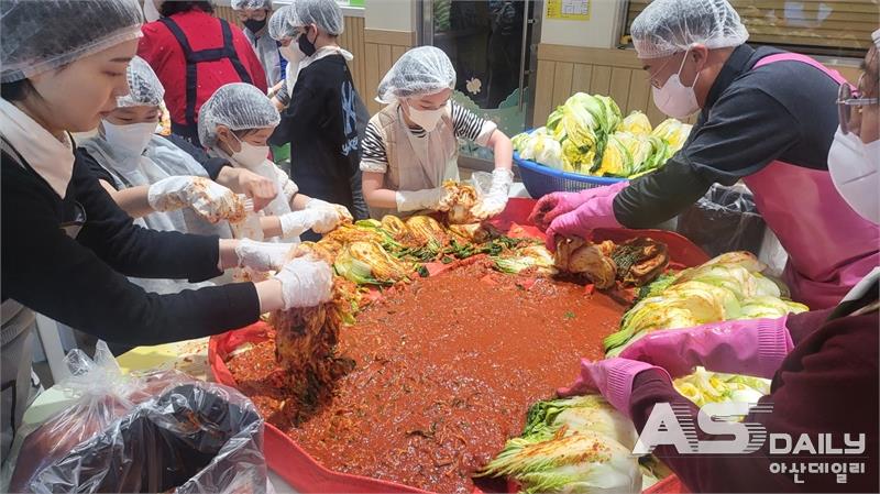 ▲아산시 배방읍 주민자치회, 청소년과 함께 사랑의 김장 담그기 체험 진행