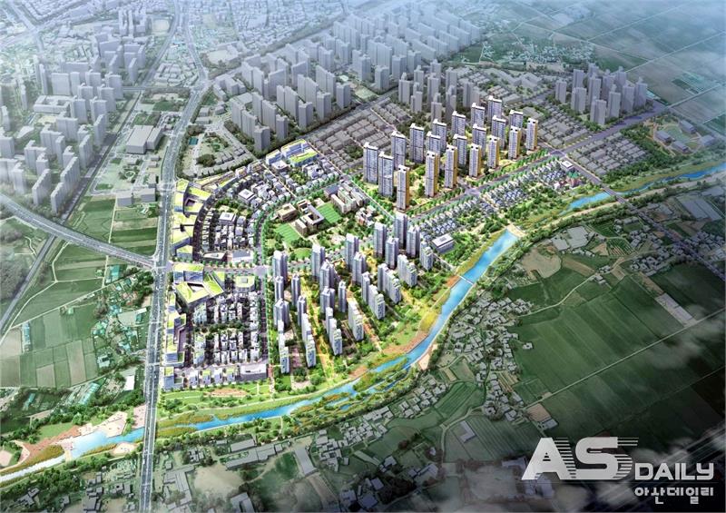 지난 9월 실시계획인가를 마쳤으며 2026년 6월 첫 삽을 뜰 예정이다. 특히 주거뿐만 아니라 혁신 성장을 이끌 산업·연구(R&D) 공간, 매곡천을 활용한 문화·상업 복합 공간이 조성돼 아산시 50만 인구 달성과 지역 위상 도약에 결정적 역할을 전망이다.