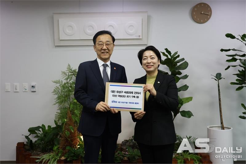 황 의원은 17일 김윤덕 국토교통부 장관을 만나 유성구 발전을 위한 현안을 집중적으로 설명하며 국토부의 적극적인 역할을 요청했다. 건의 내용에는 ▲안산 국방산업단지 조기 조성을 위한 개발제한구역(GB) 해제 ▲대전 제2차 공공기관 이전 ▲자운대 공간 재창조 사업 ▲유성구 교통 인프라 확충 등이 포함됐다.