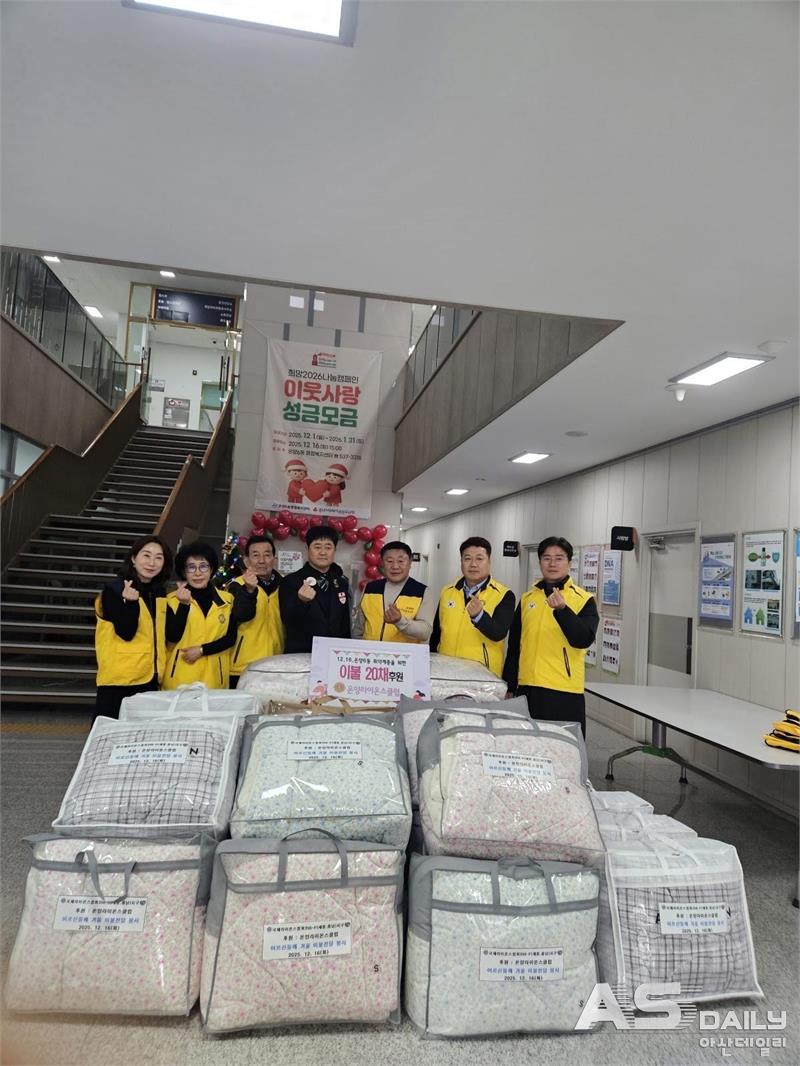 아산시 온양6동에서 겨울철 취약계층을 위한 따뜻한 나눔이 이어졌다. 온양라이온스클럽(회장 한신흠)이 행복키움추진단에 이불 20채를 기탁하며 지역사회에 온기를 전한 것이다.