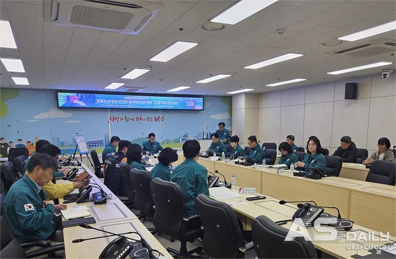▲천안시는 19일 시청 재난안전상황실에서 재난안전대책본부 대책회의를 개최했다.