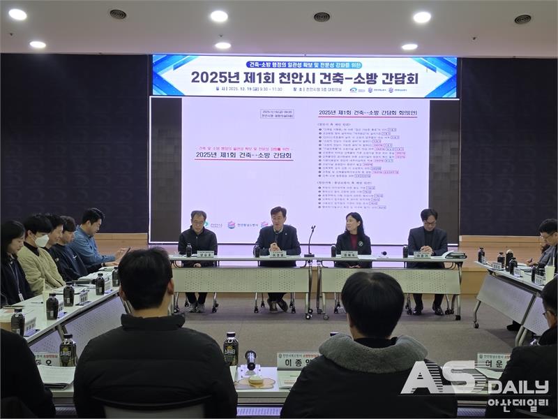 천안시는 19일 시청 대회의실에서 ‘제1회 건축-소방 간담회’를 개최했다. 간담회에는 건축 인허가 담당자와 천안동남소방서, 천안서북소방서 관계자 등 30여 명이 참석해 건축행정과 소방안전의 연계 방안을 집중 논의했다.