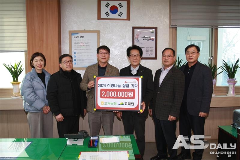 예산군 고덕농협이 연말연시를 맞아 지역 내 취약계층을 위한 따뜻한 나눔을 실천했다. 고덕농협은 19일 ‘희망2026 나눔캠페인’ 성금 200만 원을 고덕면 행정복지센터에 전달하며 지역사회 상생의 가치를 다시 한번 보여줬다.