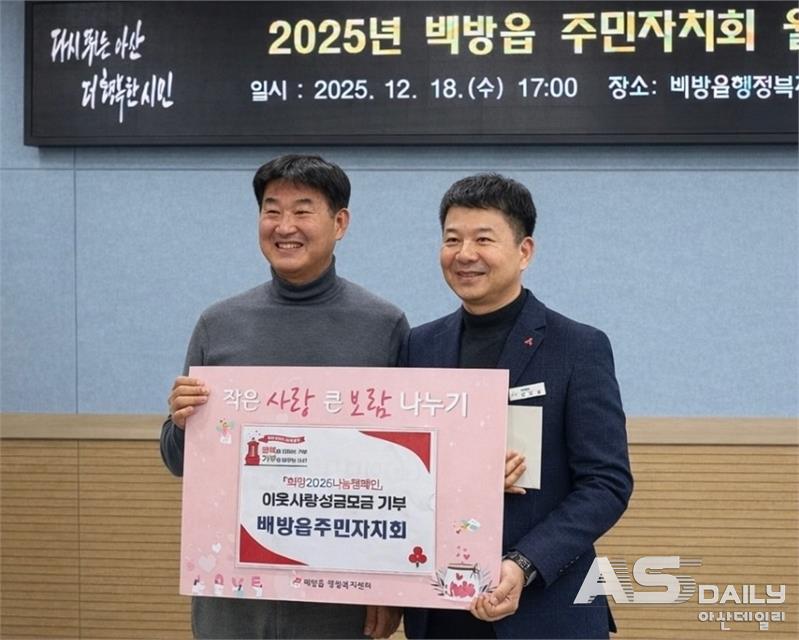 아산시 배방읍 주민자치회가 지역사회에 따뜻한 온정을 전했다. ‘희망2026 나눔캠페인’에 성금을 기탁하며 취약계층 지원과 나눔 문화 확산에 동참했다.