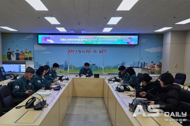 ▲지난 21일 시청 농업환경국장실에서 재난안전대책본부 상황판단회의를 열고 대응 상황을 점검하고 있다.