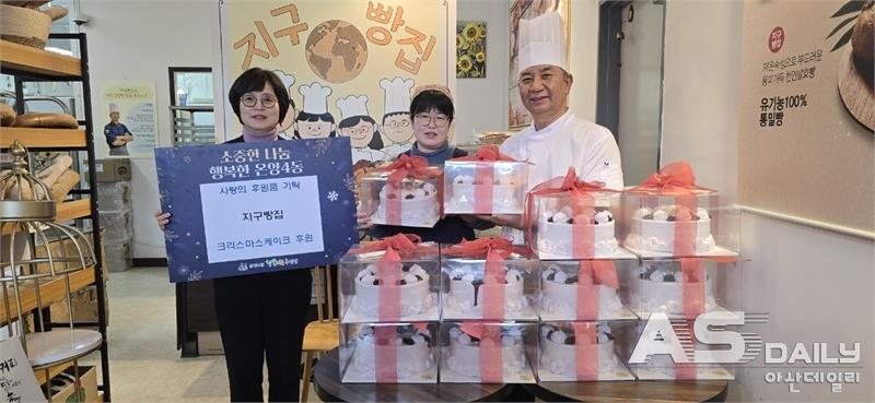 연말을 맞아 아산시 방축동의 유기농 통밀빵 전문점 지구빵집이 따뜻한 나눔을 실천했다. 지구빵집은 온양4동 행복키움추진단과 함께 사회복지법인 아인하우스 아동들에게 크리스마스 케이크를 전달하며 특별한 추억을 선물했다.