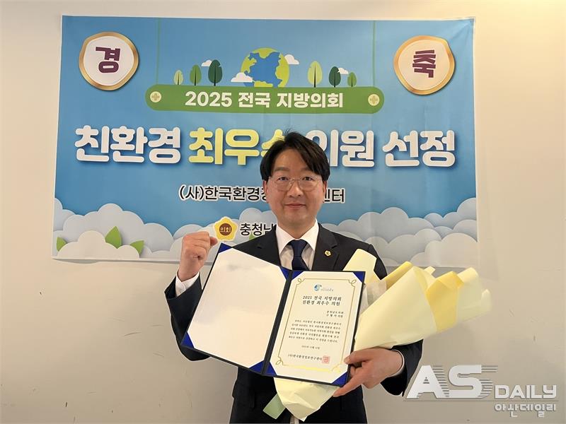 한편, 이번 ‘2025 친환경최우수의원’ 선정은 (사)한국환경정보센터가 주최한 시상으로, 지방의회의 환경·기후 대응 역량을 확산하고 실질적인 정책 성과를 격려하기 위해 마련됐다.