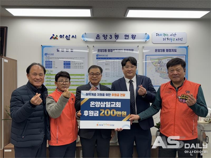 아산시 온양삼일교회가 지역사회에 따뜻한 손길을 내밀었다. 교회는 지난 30일 온양3동 행복키움추진단에 후원금 200만 원을 전달하며, 경제적 어려움을 겪는 저소득 가정과 복지 사각지대에 놓인 취약계층을 지원하는 데 힘을 보탰다.