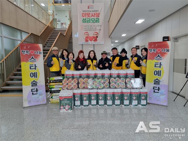 문화예술봉사회 스타예술단이 아산시 온양6동 행복키움추진단에 후원물품을 전달하며 지역 내 취약계층을 위한 나눔 활동을 이어갔다. 이번 기부는 겨울철 생계 지원이 필요한 가구에 직접 전달될 예정이다.