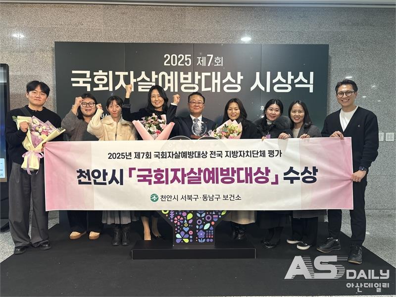 천안시가 자살예방사업 성과를 전국적으로 인정받았다. 천안시 보건소는 11일 열린 ‘2025 국회자살예방포럼’에서 인구 30만 이상 기초자치단체 부문 ‘대상’을 수상하며 생명존중 문화 확산에 앞장서는 도시로 자리매김했다.국회자살예방포럼은 자살예방에 관심을 가진 국회의원들이 참여해 생명 보호 활동을 지원하는 단체다. 이번 시