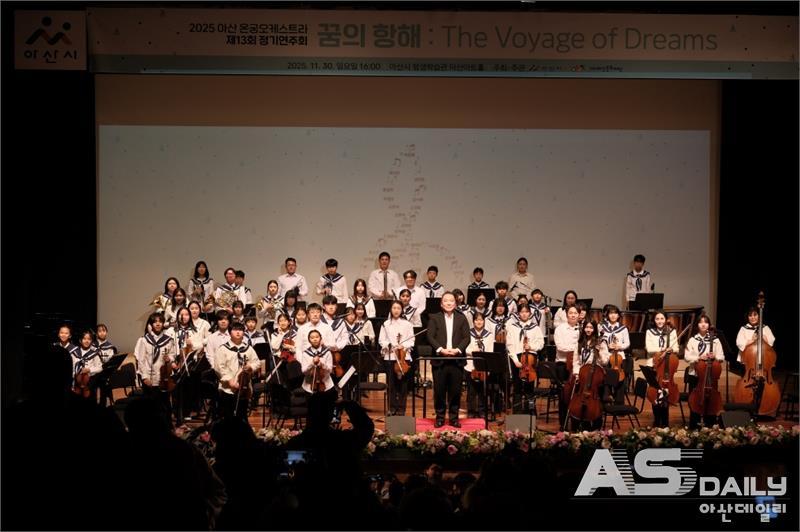아산 온궁오케스트라가 제13회 정기연주회 ‘꿈의 항해(The Voyage of Dreams)’를 성황리에 마쳤다. 청소년과 시민이 함께하는 무대에서 클래식과 영화음악, 창작 교향곡까지 다채로운 프로그램을 선보이며 지역 문화예술의 저력을 보여줬다.(재)아산문화재단은 지난 11월 30일 아산아트홀에서 열린 아산 온궁오케스트라
